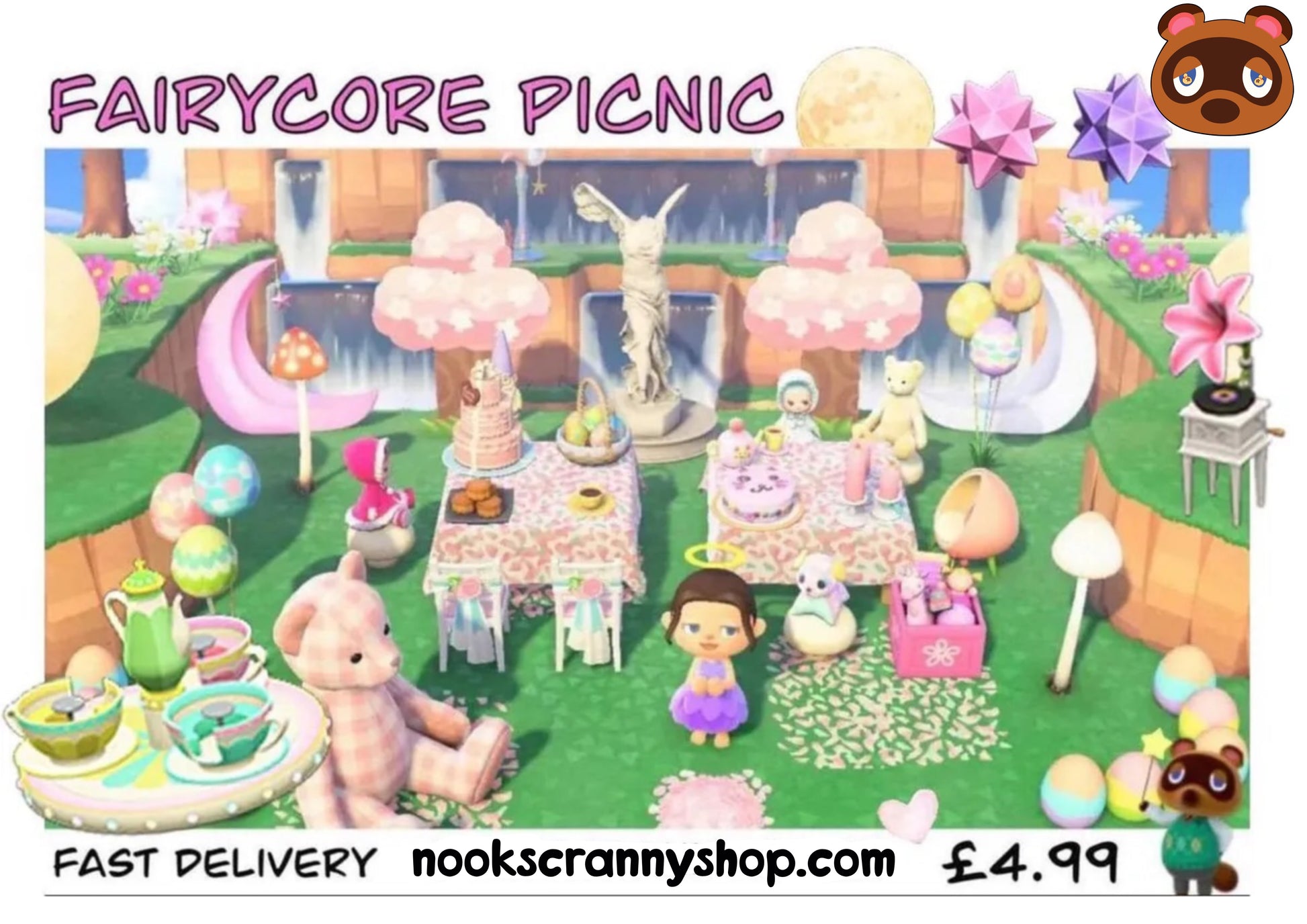 Everything you need to create this Fairycore Picnic on your island.