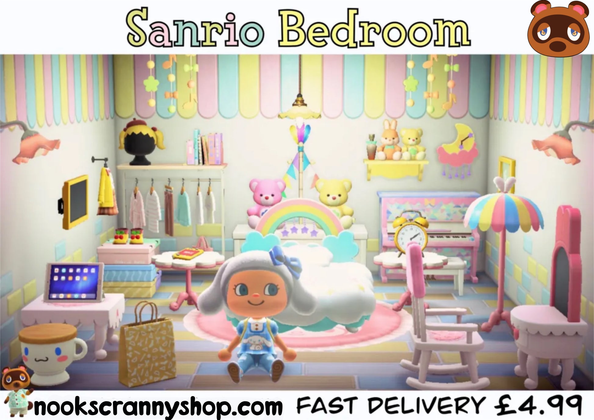 Everything you need to recreate this awesome Sanrio House including the Sanrio Bathroom, the Sanrio Bedroom, the Sanrio Kitchen and the Sanrio Living Room.